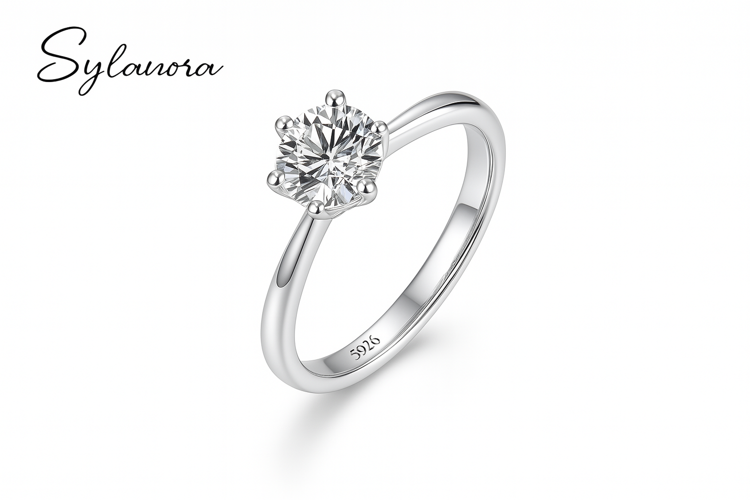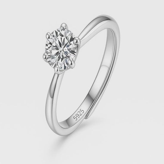 Add a touch of timeless luxury with this dazzling adjustable ring from Sylanora. Crafted from genuine S925 sterling silver and finished with rhodium plating for extra shine and durability, it features a brilliant 6.5mm AAA+ cut cubic zirconia crystal set in a classic claw setting.